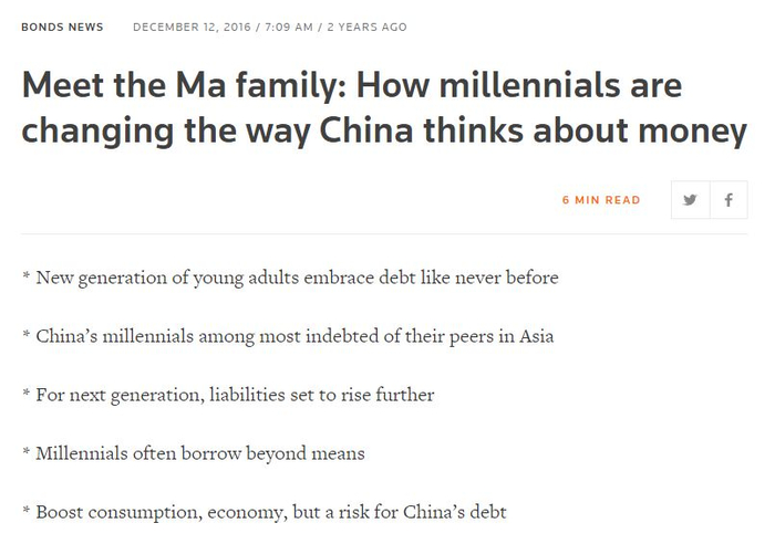 到2016年12月,路透社的一篇文章,名为《与马家人见面:千禧一代如何改变中国对金钱的看法》,援引了宏利保险的数据。