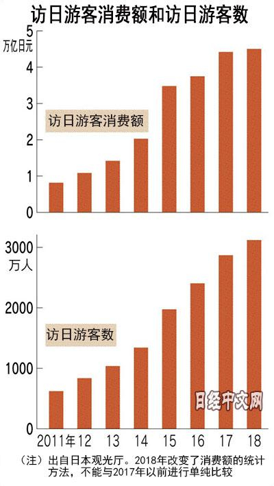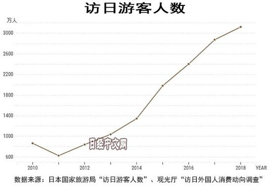 2018年的访日游客人数首次突破3000万人,达3119万人,5年增至3倍,如果访日游客人数能够按这个速度增长下去,有望达成日本政府提出的“2020年访日游客达到4000万人”的目标。