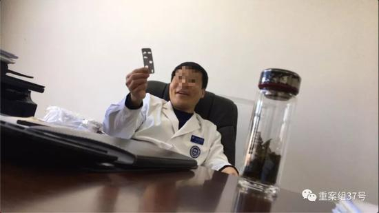 ▲1月17日上午,新京报记者在北京大学国际医院副院长谢某办公室内见到谢某,谢某向记者展示其开的药物包装,据谢某称,这是他通过虚假诊断在医院开出的药物,为了给自己进行预防治疗使用。 新京报记者 大路 摄