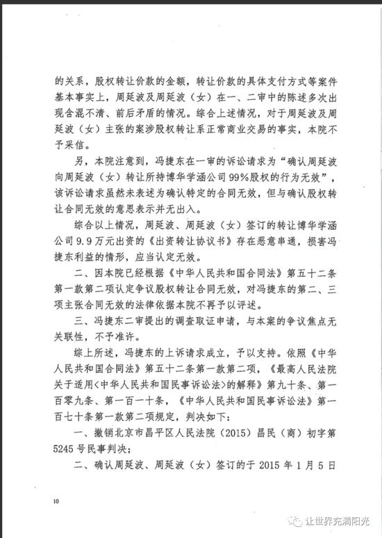 我就这几起转移夫妻共同财产的案件,向法院提了诉讼。周延波头顶陕西省人大代表的光环,利用在陕西的人脉,在法院请托、说情。所有我起诉的案件,周延波都是能拖则拖,玩尽各种司法程序,用尽各种卑劣手段,致使我在西安起诉他转移夫妻共同财产的案件已过去近四年都没结果。有的一审出了结果,反而是我败诉!而与之形成鲜明对比的是,我在北京起诉周延波转移财产的两个案件,同时起诉、案情相似,法院均判定周延波败诉,判决其在离婚期间与他人恶意串通,转移隐匿夫妻共同财产,转移行为无效。