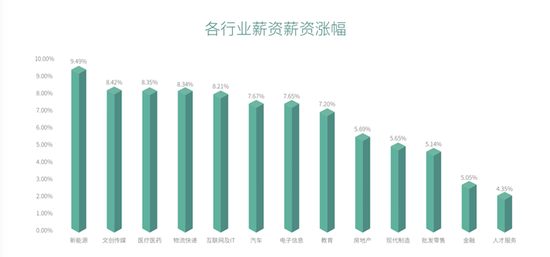 新能源行业的平均薪资涨幅却达到了9.49%,依然位列第一。可见,在2018年,随着我国传统制造业的转型,新能源实现了名副其实的“高开高走”。