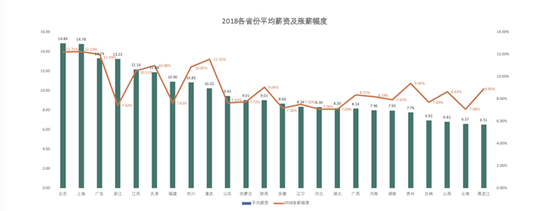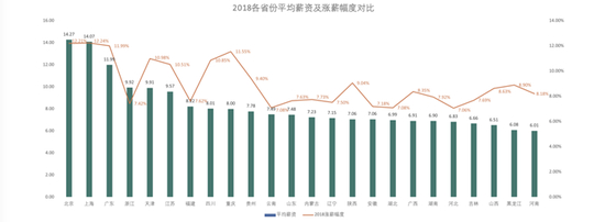 从涨薪幅度来看,重庆以11.55%的薪资涨幅仅次于北上广;紧随其后的是天津(10.98%)和四川(10.85%)。