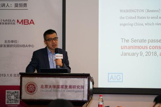 题记:2019年1月6日,北京大学国家发展研究院MBA讲坛邀请到美国国际集团(AIG)董事总经理和首席经济学家莫恒勇博士。莫恒勇博士曾任瑞士信贷(CreditSuisse)董事和资深全球及美国经济分析师、美国国家经济研究局(NBER)助研,并任教于纽约城市大学。此次讲座,莫博士分别从民粹主义与去全球化、美中贸易争端及美国宏观策略分析三个方面展开,分析去全球化浪潮下投资的风险和机遇。
