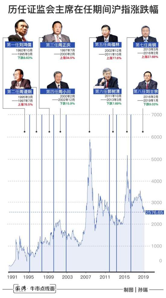 最后来回顾下历任证监会主席任职期间的上证综指涨跌情况: