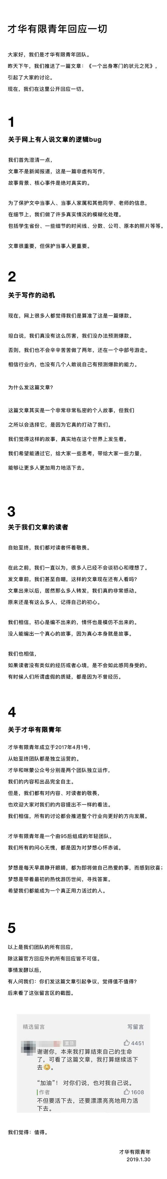 《一个出身寒门的状元之死》首发于微信公号“才华有限青年”,是“咪蒙”公号矩阵中的年轻成员。