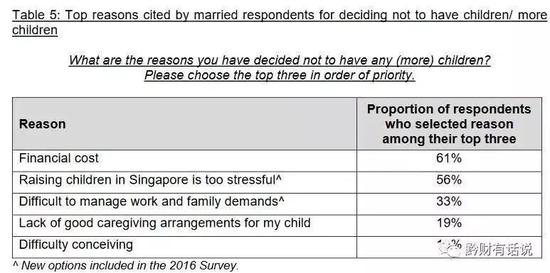 新加坡总理府的婚育调查表明,新加坡父母不愿意要小孩或者不愿意要更多小孩的top2原因分别是:经济开销大(61%),在新加坡养娃压力太大(56%)。