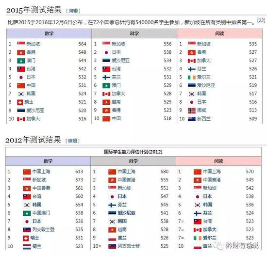 精英化教育让新加坡学生的学业表现一直非常优异,在著名的PISA测试中,新加坡经常名列前茅——整体上东亚发达地区都非常优秀,反映了东亚群众对教育高投入的传统。