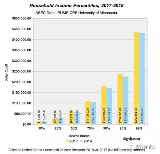 2017年~2018年美国家庭收入分布,基于2014美国普查数据预估