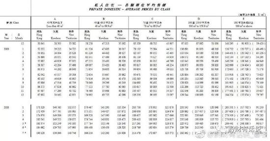 下图是香港2009年和2018年的住房价格对比,在此期间,香港房价涨了2倍多到3倍。目前港岛均价约20万港币/平,九龙16万~17万,新界11万~12万,住宅单位价格全球顶尖。