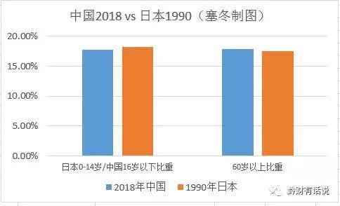 1990年的日本,60岁以上人口占比17.5%,比2018年的中国略低;0~14岁人口占比18.2%,比2018年中国16岁以下比重略高。如果都采用同年龄段口径,则比中国还要再高一些。