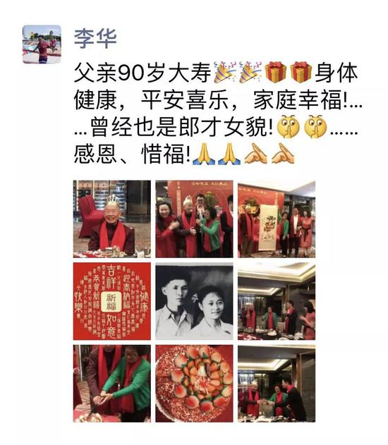 大年初一(2月5日)凌晨,卓越集团董事长李华更新了一条微信朋友圈,给90岁老父亲祝寿,并称“感恩、惜福”。这距外界盛传其于1月19日被带走协助调查刚过去半个月。