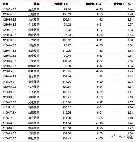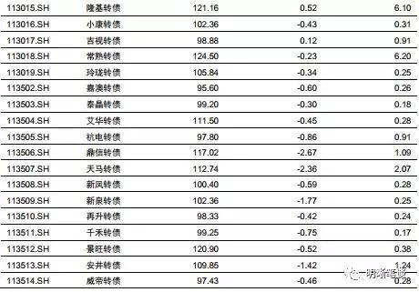 2月19日转债市场,平价指数收于92.22点,下降0.25%,转债指数收于110.78点,下降0.44%。121支上市可交易转债,除江南转债、长证转债横盘外,29支上涨,90支下跌。其中维格转债(6.13%)、万顺转债(2.72%)、横河转债(1.79%)领涨,鼎信转债(-2.67%)、天马转债(-2.36%)、洲明转债(-2.29%)领跌。121支可转债正股,除中化岩土、兄弟科技、常熟银行、海印股份、江南水务、维格娜丝横盘外,45支上涨,70支下跌。其中,格力地产(7.10%)、横河模具6.44%)、蓝盾股份(4.97%)领涨,济川药业(-7.10%)、鼎信通讯(-6.17%)、三一重工(-3.03%)领跌。