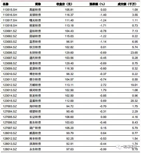 落脚到具体策略层面,依旧推荐两条主线,一方面低价标的的逆周期投资仍有尾部红利,进一步放松对溢价率的要求才能筛选出足够数量的标的,例如汽车、环保、新能源、金融、电子等;另一方面则是关注基于正股主题beta的机会,这一策略则更偏向交易层面,高弹性标的属于关注的目标区间,例如5G、猪周期、基建、消费电子相关等板块。