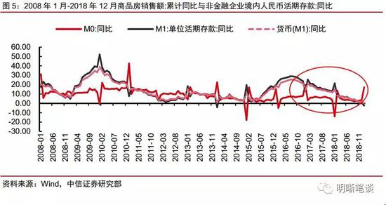 企业存款与房地产走势密切相关,居民定期存款向企业活期存款转化转弱,是企业活期存款同比增速下降的原因之一。回顾2007年2月至2018年12月的历史数据,我们可以发现,商品房销售额增速与非金融企业境内人民币存款同比增长有较为明显的相关性。在地产销售火热时期,购房行为导致居民的中长期存款转化为企业的活期存款,使得M1大幅增长。今年以来受房市调控影响房地产走弱,居民定期存款向企业活期存款的转化减弱,企业活期存款增量减小。