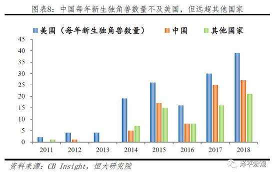 中国在高科技领域快速发展,独角兽数量仅次于美国,取得了令世界瞩目的成绩。科技是第一生产力,是国家实力的关键,而独角兽企业的诞生是科技领域成绩的重要证明。从全球视角来看,美国和中国占据超七成以上的企业,根据CB Insight数据统计显示,从2011年至2018年,全球共有292家独角兽企业。其中来自美国的共140家,占47.9%;中国共84家紧随其后,占28.8%;其他国家合计占比23.3%。