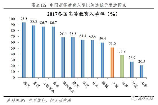 2.1.3 高等教育入学比例:发展迅速,总量不足