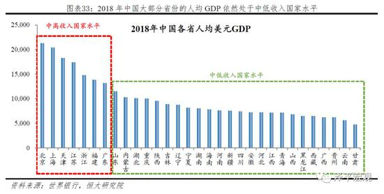 5)从各省发展水平看,地区差异较大,京沪津苏浙闵粤七省已迈入高收入经济体行列,但绝大部分省份仍然处于中低收入国家水平。