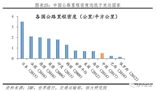 中国公路里程密度低,与部分发展中国家相比仍有较大距离。2017年,中国公路里程密度0.51公里/平方公里,而日本则高达3.5公里/平方公里,同样作为发展中国家,印度公路里程密度高达1.8公里/平方公里,可见,虽然铁路基础设施建设高速发展外,我国的其他基础设施建设水平依然不足,不仅较发达国家有较大差距,与部分发展中国家相比也仍有较大提升空间。