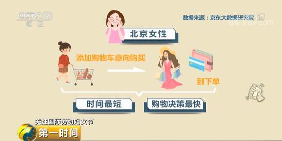 北京女孩性格豪爽和利落,决定着她们消费决策的果断。北京女性从添加购物车意向购买到下单的时间最短,购物决策最快。
