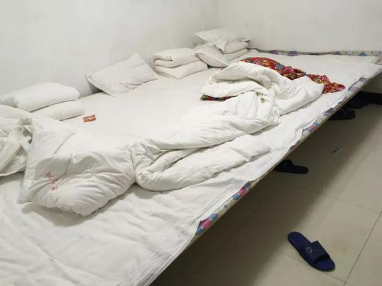 我住在一楼一间暗房,大约十五平方米。占据大半面积的是一张木板通铺,紧贴三面墙,摆有四份被褥,枕头和床单是白色,被子用东北大花布装饰。一张茶几,摆有一个插座。墙角是一个衣帽架。一间独立卫浴,有洗漱台和抽水马桶,没有镜子,插电式热水器是唯一的电器,还有一个坏的排气扇。没有提供毛巾牙刷洗发水,但有几双塑料拖鞋。现在是集中供暖,地暖的热气从白瓷砖下传出,因为太热要开着门透气。整个公寓似乎有两男两女四个服务员,管理前台、卫生、做饭。