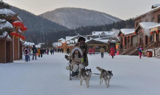 题图为2019年1月4日,黑龙江省牡丹江市双峰林场中国雪乡风景区内,游客在体验狗拉雪撬。图片来自视觉中国。