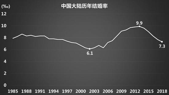 此外,结婚率降低也跟人口结构变化有关。随着老龄化的发展,结婚适龄人口的比重在相应减少。