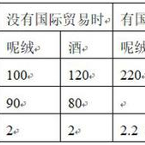 如上图,假设世界上只有两个国家:英国和葡萄牙,只有两种产品:呢绒和酒。生产一单位的呢绒英国需要投入100单位劳动,葡萄牙则需要90单位劳动;生产一单位酒,英国需投入120单位劳动,葡萄牙需要投入80单位劳动。投入不变情况下各生产出1单位呢绒和1单位酒。