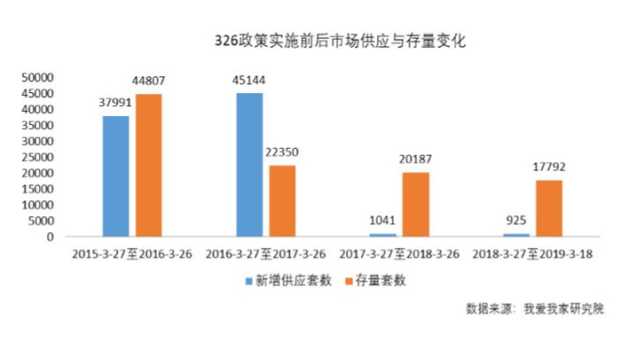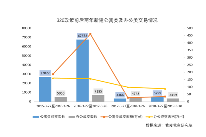 另据我爱我家研究院的统计,在“3·26新政”前一年(2016年3月27日-2017年3月26日)里,北京全市新建公寓类房产共网签 67673套,而后一年,这一数据“速降”至3366套,降幅达95.0%;第二年虽同比回升57.4%至5299 套,但仍比政策实施前下降92.2%。