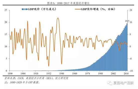 经济保持较快速增长,更加平稳。1889-1945年,GDP从125亿美元增长到2280亿美元,年均名义和实际增速分别为5.3%和3.9%;2006年GDP达13.8万亿,1946-2006年年均名义和实际增速分别为7%和3.1%、仍保持在较快水平。1945年以前,经济波动较为剧烈,实际增速既出现接近20%的正增长,也出现过-13%的负增长;1946年以后,经济波动显著弱化,实际增长基本保持在正区间,且不超过10%。