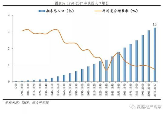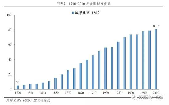 人口长期增长,城市化进程基本完成。美国总人口从1790年的393万人增加到2017年的3.3亿人,累计增长82倍,年均复合增长率达2%。城市化率从建国初期的5.1%提升至2010年的80.7%,年均上升0.34个百分点。