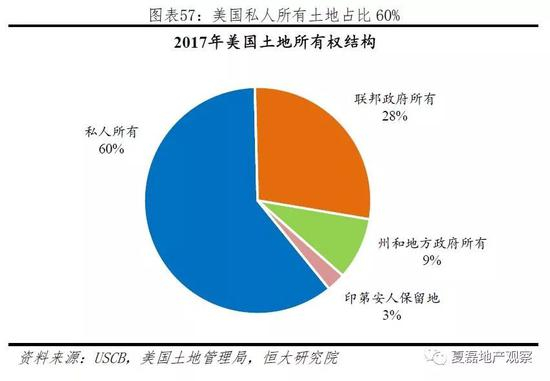 3.2 土地制度:私有为主、自由交易,土地供给充足美国土地以私有为主,可自由转让和开发。在美国,私人所有的土地占60%,法律保护私有土地所有权不受侵犯,可以自由买卖和出租,价格由市场供求关系决定。获得土地的个人和开发商在符合相关规划要求的情况下,可以向政府申请建房,建好之后自住、出租或出售。3.2.1 土地所有制:私有为主,公有土地主要服务于公共利益私人所有土地占美国国土面积的60%。公有土地占比也较可观,联邦政府所有土地占28%,州政府所有土地占9%,合共占全国37%。还有3%的土地是印第安人的保留地。