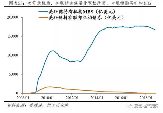 政府信用背书,强化国际资本市场对美国抵押贷款相关证券和联邦机构债券的安全性的信心。房利美和房地美作为政府赞助企业,市场一直认为它们具有隐含的政府信用。次贷危机发生之后,政府信用得到证实,一方面,联邦住房金融局接管两房,另一方面,美联储持续买入机构MBS,截至2018年10月,美联储持有机构类抵押贷款相关证券的规模达1.67万亿美元,占存量的比重达18%,占美联储总资产的比重达40%,占次贷危机以来美联储总资产增量3.2万亿美元的一半。