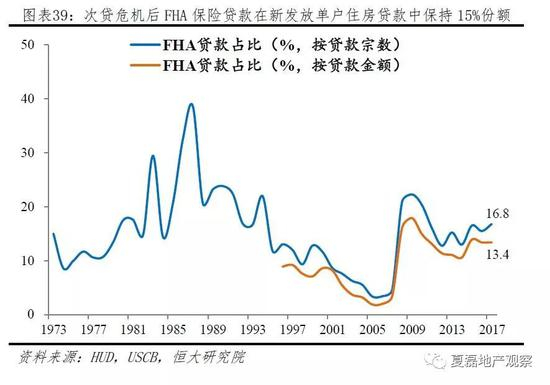 FHA和VA是最主要的政府性房贷保险机构。隶属于美国住房和城市发展部(HUD)的FHA,是全球最大的房贷保险机构,保险存量规模超过1.3万亿美元。FHA每年保险的单户住房抵押贷款超过100万份,保险的多户住宅抵押贷款可提供的租赁住房单元超过30万个。FHA主要服务于低信用群体,购房者最低只需首付3.5%,而且FHA保险为全额保险,对贷款方保障系数最高。FHA自1934年成立以来即成为最重要的房贷保险机构,目前FHA贷款在新发放贷款中的份额维持在15%左右,在新发放的有保险或有担保抵押贷款中占比近一半。VA则为达到一定服役期限的退役或现役军人提供贷款担保,最低可实现零首付,在新发放的有保险或有担保贷款中占比约1/4。隶属于美国农业部(USDA)的RHS也提供贷款担保服务,服务于在农村地区购置主要住房的中低收入群体,同样支持零首付。在美国,属于某个特定政府项目的抵押贷款称为非传统贷款(Non-conventional Loan),其他则为传统贷款(Conventional Loan)。