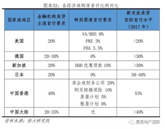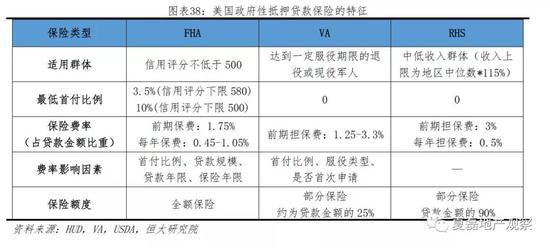 大萧条以来,美国经过将近一百年的探索发展,形成全球最成熟的住房金融体系。美国政府依托美元霸权,积极地干预住房市场,为住房金融市场增信,促进住房信贷供给。在一级市场建立起完善的抵押贷款保险体系,进一步降低信贷门槛;二级市场成立以两房和吉利美为核心的资产证券化机构,通过抵押贷款证券化从资本市场获取流动性,从而持续购买一级市场机构发放的抵押贷款支持其贷款出表,为一级市场提供流动性。3.1.1 住房金融一级市场:首付低、产品类型多,健全的保险体系进一步降低贷款门槛美国实行低首付比例要求,新发放房贷实际首付比例不足20%,明显低于德国、新加坡、日本等国超过30%的水平。抵押贷款机构以抵押贷款公司和大型银行为主,提供多样化的抵押贷款产品和用途,再融资比重高达1/3。抵押贷款保险通过保护贷款方,促进住房信贷供给,特别是对于低首付、低信用、低收入居民家庭的信贷供给,进一步降低信贷门槛。(1)实行低首付比例要求美国的首付比例在国际处于显著偏低水平。在美国,由联邦住房金融局(FHFA)接管的房利美与房地美对抵押贷款的相关规定是市场主流标准,其限定的合规贷款(Conforming Loan)的最低首付比例是20%;如购买FHA或PMI保险,可以实现3.5%或3%的首付,如果满足VA或RHS担保条件,更可以实现零首付,2017年新发放贷款实际平均首付比例低于20%。德国的住房贷款理论上可以零首付,但审核条件严苛,通常首付比例在20-30%。新加坡以银行贷款为主流,最低首付比例20%,符合HDB优惠贷款的购房者可只首付10%。日本仍可零首付,但银行建议的财务安全的首付水平是20%,目前实际平均首付比例在30-40%。中国香港对于居民购买首套私人住宅,银行贷款要求首付不低于40%、开发商和财务公司等要求20%,如果居民购买抵押贷款保险可以享受10%首付,政府房屋计划的参与者最低可实现零首付,但低首付条件比较严格,目前新发放贷款的实际平均首付比例超过50%。中国大陆因城施策,各城市首套房首付比在20-35%之间,二套房首付比40-80%之间。