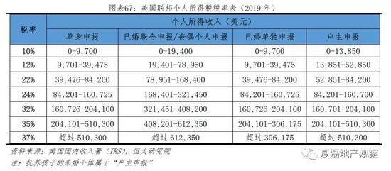 3.3.2 租金收入所得税对于住房租金收入,需纳入个人所得进行征税,属于保有环节税收。租金收入所得税的应税金额为扣除物业费、房地产税、基本维修费、水电费、抵押贷款利息、折旧等持有成本后的净租金收入。联邦政府、州政府和地方政府均征收个人所得税。各级政府独立核算征收,每年1月1日-4月15日,纳税人在国税局、州及地方政府官网分别进行纳税申报。联邦政府和大多数州政府对个人或家庭收入实行综合征收,按超额累进税制,其中联邦个人所得税税率10-37%;州一级个人所得税的最高边际税率介于2.9-13.3%。每年,联邦政府会对税率区间做税收指数化(Tax Indexing)调整,以消除通货膨胀造成实际应纳税额增加的效应,2018年以前,依据CPI进行调整,2017年税改法案《减税和就业法》通过,规定自2019年起依据CCPI(Chained-CPI)进行调整。