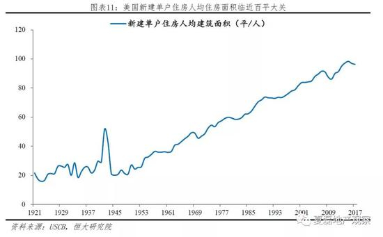 美国居民住房消费水平令人欣羡。住房供给充足,上世纪60年代,套户比就达到1.1、住房自有率超过60%,至今稳定在1.1和60%以上;62%的住房为独立式单户住宅,2017年新建单户住房的平均建筑面积244平,人均96平。设施齐全,住房质量佳。现代化能源供暖为主,86%的房屋使用管道天然气或电能,99.6%的住房有完备的管道设施,99.2%的住房有完整的厨房设施,97.7%的住房开通电话业务。