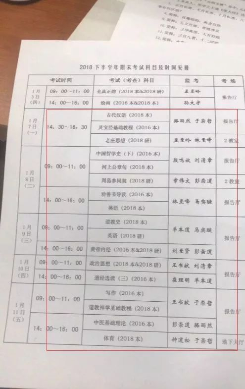 古代汉语、老庄思想、周易、道教史、英语、政治思想、中国哲学史、中医、黄帝内经等11门课程,五天考完了解一下