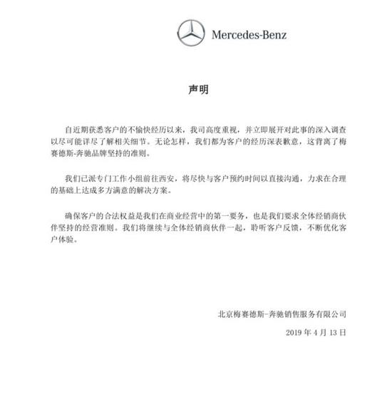 奔驰官方回应西安"哭诉维权":奔驰漏油事件将获解决