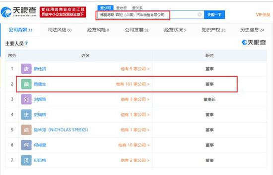 天眼查数据显示,西安利之星主体公司为【西安利之星汽车有限公司】, 股东分别为中星集团有限公司和西安航空发动机集团天鼎有限公司,其法定代表人颜健生在梅赛德斯-奔驰(中国)汽车销售有限公司中担任董事,其担任法定代表人的企业多达129家,担任高管149家,其中企业多数与利之星相关。