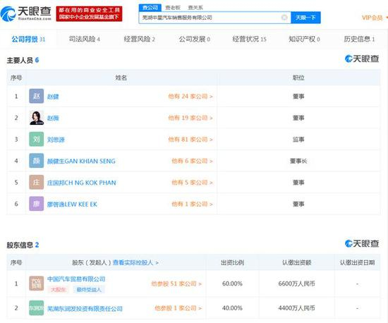 另外,颜健生旗下的芜湖中星汽车销售服务有限公司,由赵薇与其哥哥赵健担任董事,赵薇为最终受益人之一。