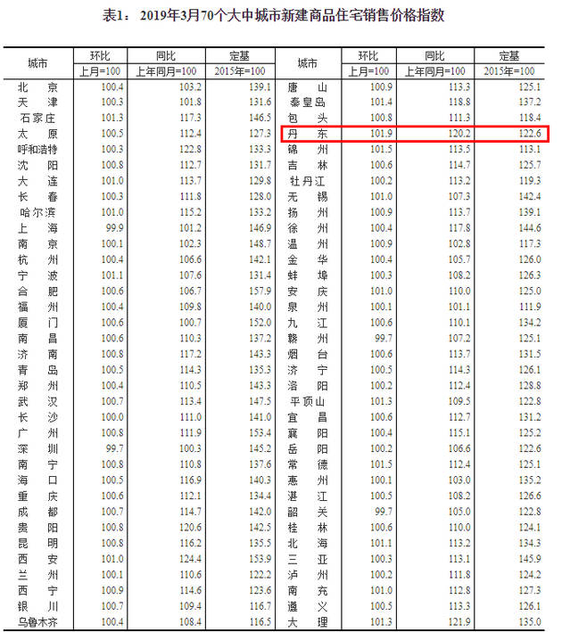 时隔一年,丹东又上“头条”。4月16日,国家统计局公布2019年3月70城房价数据,丹东环比涨幅领跑70城,达1.9%。