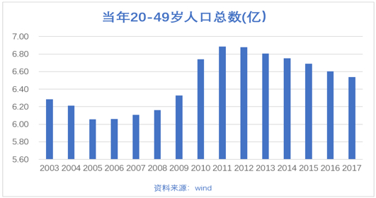 如果设定购房需求的主力为20-49岁的人群的话,2003年至2017年这个群体的人口数是如下图这样的: