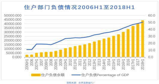 货币的另一个角度是居民承债能力和加杠杆的可能性也在减弱。2018年6月末,住户部门的债务余额已经达到了43.56万亿人民币,对GDP的占比超过50%。央行发布的《中国金融稳定报告(2018)》认为,“2017年末,我国住户部门杠杆率(债务余额/GDP)为49.0%,低于国际平均水平(62.1%),但高于新兴市场经济体的平均水平(39.8%)。尽管我国住户部门杠杆率低于国际平均水平,但近年来增速较快。2008年末,我国住户部门杠杆率为7.9%,至2017年末已经达到49.0%,10年间上升31.1个百分点。”显然,未来居民债务在大幅增长的空间很有限,比如像过去10年再上升31个百分点的可能性基本不存在。因为如果真是那样,居民杠杆率就超过80%,远高于国际平均水平。