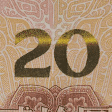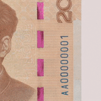 2019年版20元、10元纸币采用光变镂空开窗安全线,与2015年版100元纸币类似,改变钞票观察角度,安全线颜色在红色和绿色之间变化;透光观察,20元纸币可见“¥20”,10元纸币可见“¥10”。