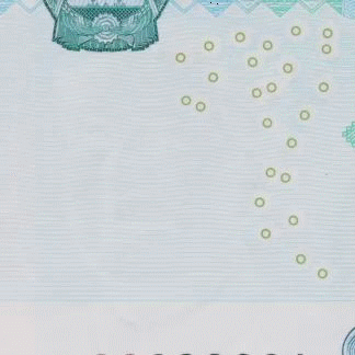 票面正面左下角和背面右下角均有面额数字的局部图案。透光观察,正背面图案组成一个完整的面额数字。