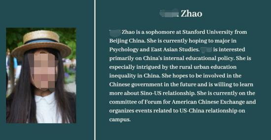 另外,有美国媒体还在一个名为“普林斯顿中美联盟”的网站上发现了关于赵涛的女儿的介绍,称赵涛的女儿对中国的教育政策以及教育不平等问题很感兴趣,希望将来可以投身于中国的教育事业。该网站贴出的一张赵涛女儿的照片,也与中国那个视频直播平台发布的那个女子的照片相吻合。