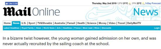 同样围观此事的英国《每日邮报》就在他们的报道中这样描述说:“但此案却出现了奇怪的转折,即赵涛的女儿并没有被斯坦福大学的帆船队录取,而是凭借自己被学校录取了”。
