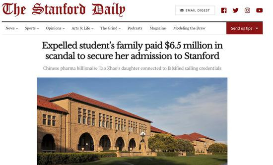 本文转载自微信公众号“环球时报”(ID:hqsbwx ),原文首发于2019年5月2日,标题为《外媒曝光:花650万美元送女儿上斯坦福的中国富豪是他》。