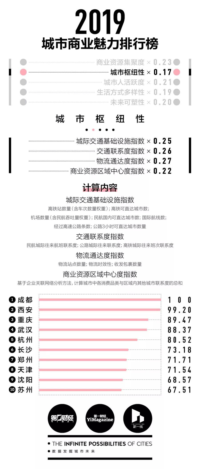 从城市枢纽性这个指标最初设立开始,我们就试图从交通、物流和商业资源的区域中心度三个领域来了解每座城市与其周边城市所构建起来的网络。
