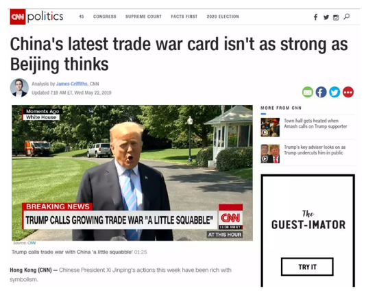 也有一些美国媒体没那么悲观。CNN就发表了一篇评论,称稀土这张“贸易战牌”没有想象的那么强大。